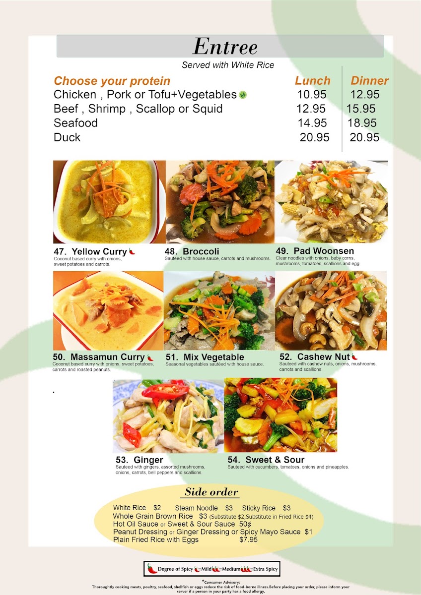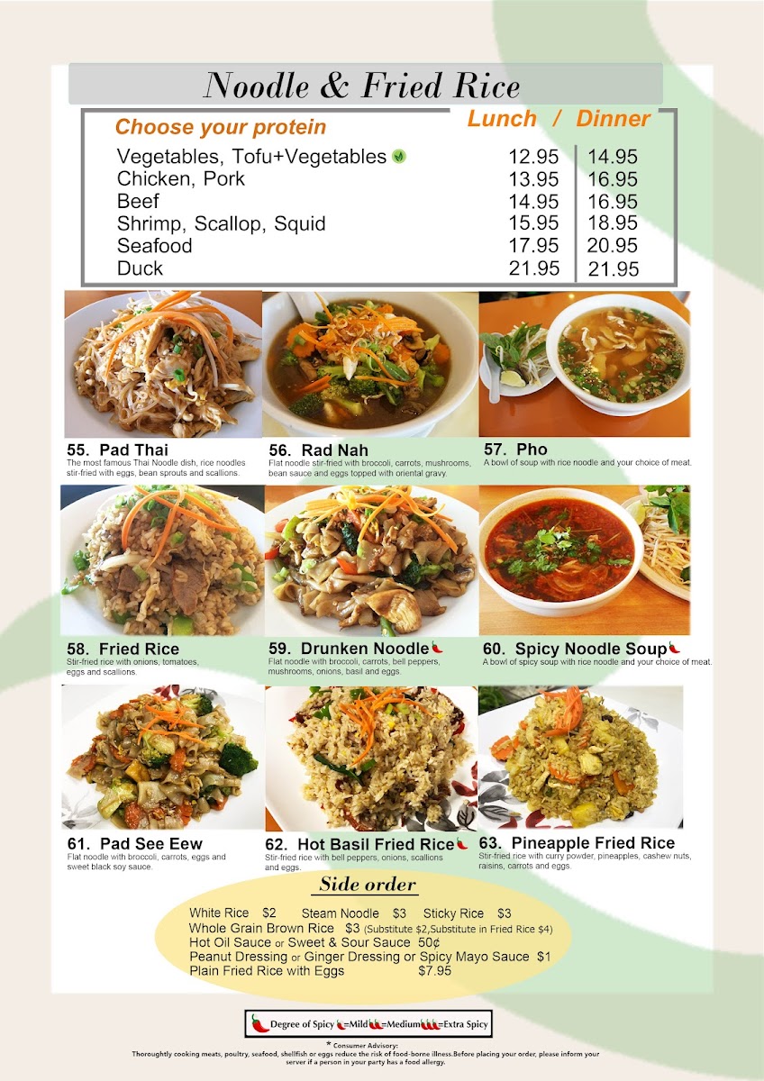 For those yearning for variety, the menu features a range of choices, including Rad Nah and fried rice selections. Dessert lovers will revel in options like Fried Banana with Ice Cream and Mango Delight, ensuring a sweet finish to your meal.